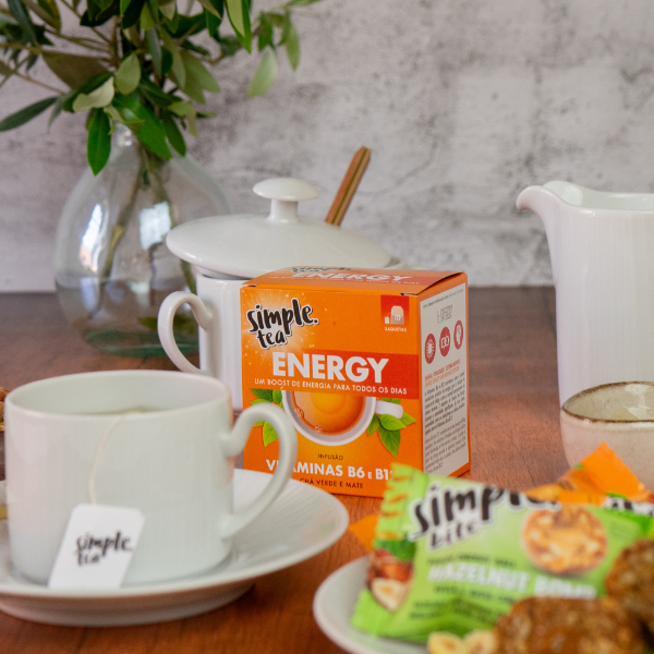 Infusão de Plantas + Vitaminas Elaboradas com dedicação e respeito pela natureza, as infusões Simple® Tea são a companhia ideal para os vários momentos do dia. Aliámos ao poder das plantas alguns ingredientes que conferem às nossas infusões um caráter funcional. Simple® Tea está ao seu lado quando precisa de um momento só seu, aquele momento em que sente o melhor que a natureza tem para lhe oferecer. Simple® Tea Energy Infusão com chá verde e mate contribui para uma maior energia e vitalidade.