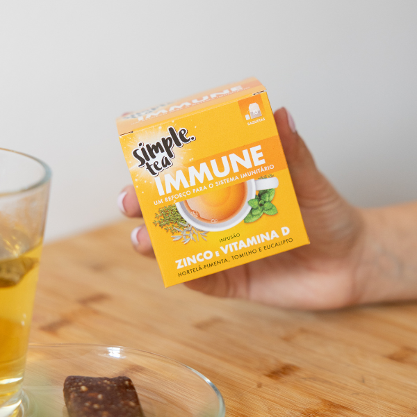 Infusão de Plantas + Vitaminas + Minerais Elaboradas com dedicação e respeito pela natureza, as infusões Simple® Tea são a companhia ideal para os vários momentos do dia. Aliámos ao poder das plantas alguns ingredientes que conferem às nossas infusões um caráter funcional. Simple® Tea está ao seu lado quando precisa de um momento só seu, aquele momento em que sente o melhor que a natureza tem para lhe oferecer. Simple® Tea Imunne Infusão com zinco e vitaminha D contribui para um reforço do sistema imunitário.